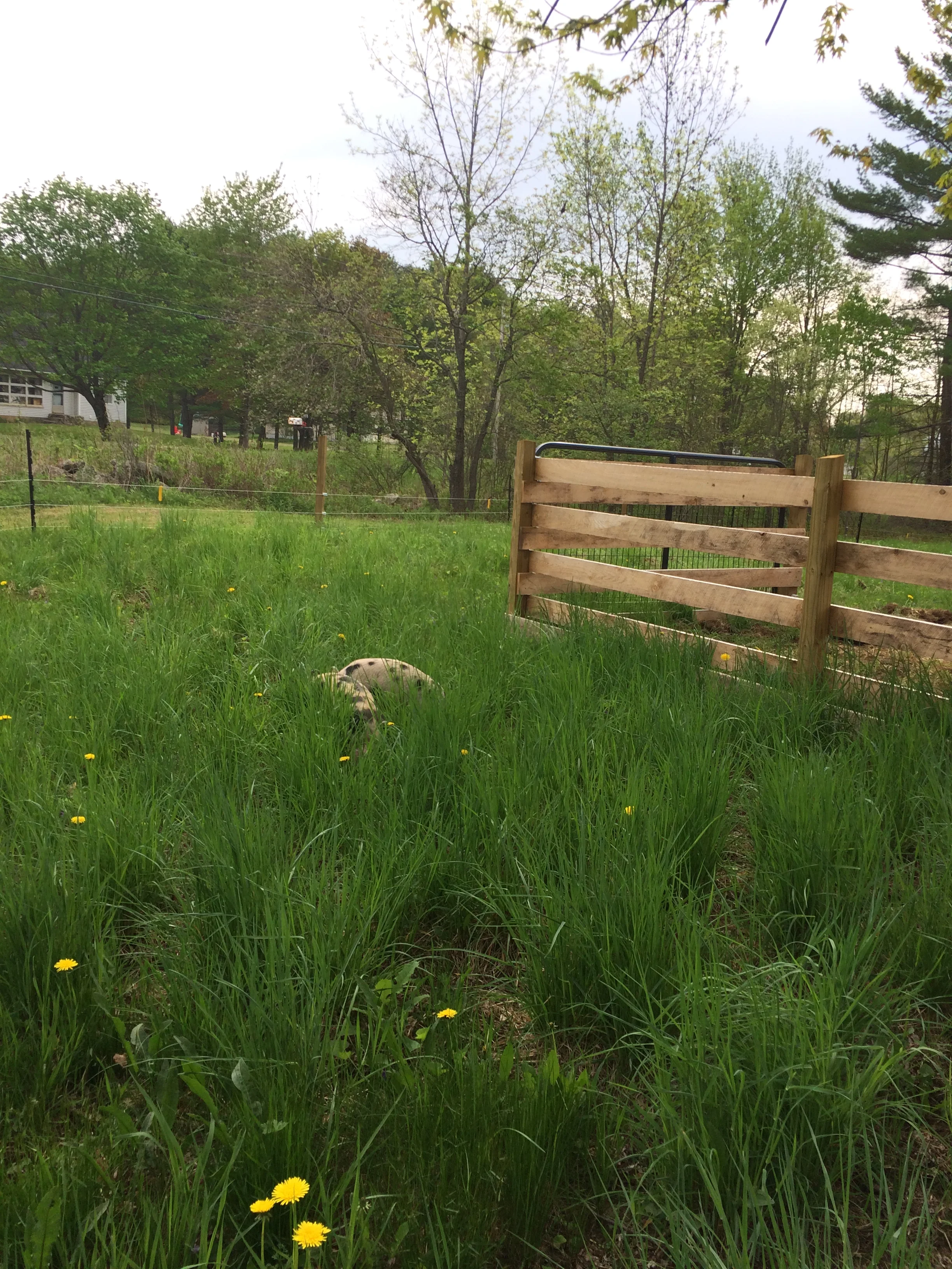 All Lazy Acres pork is sourced locally.  Piglets arrive at about six weeks of age and enjoy endless opportunities to dig in the dirt and wallow in the mud.  Their pasture is rotated throughout the season to allow fresh earth to dig up, and to allow the pasture to rest.  They feast on everything they can find, as well as a balanced diet of grain and all of the garden leftovers they want.
