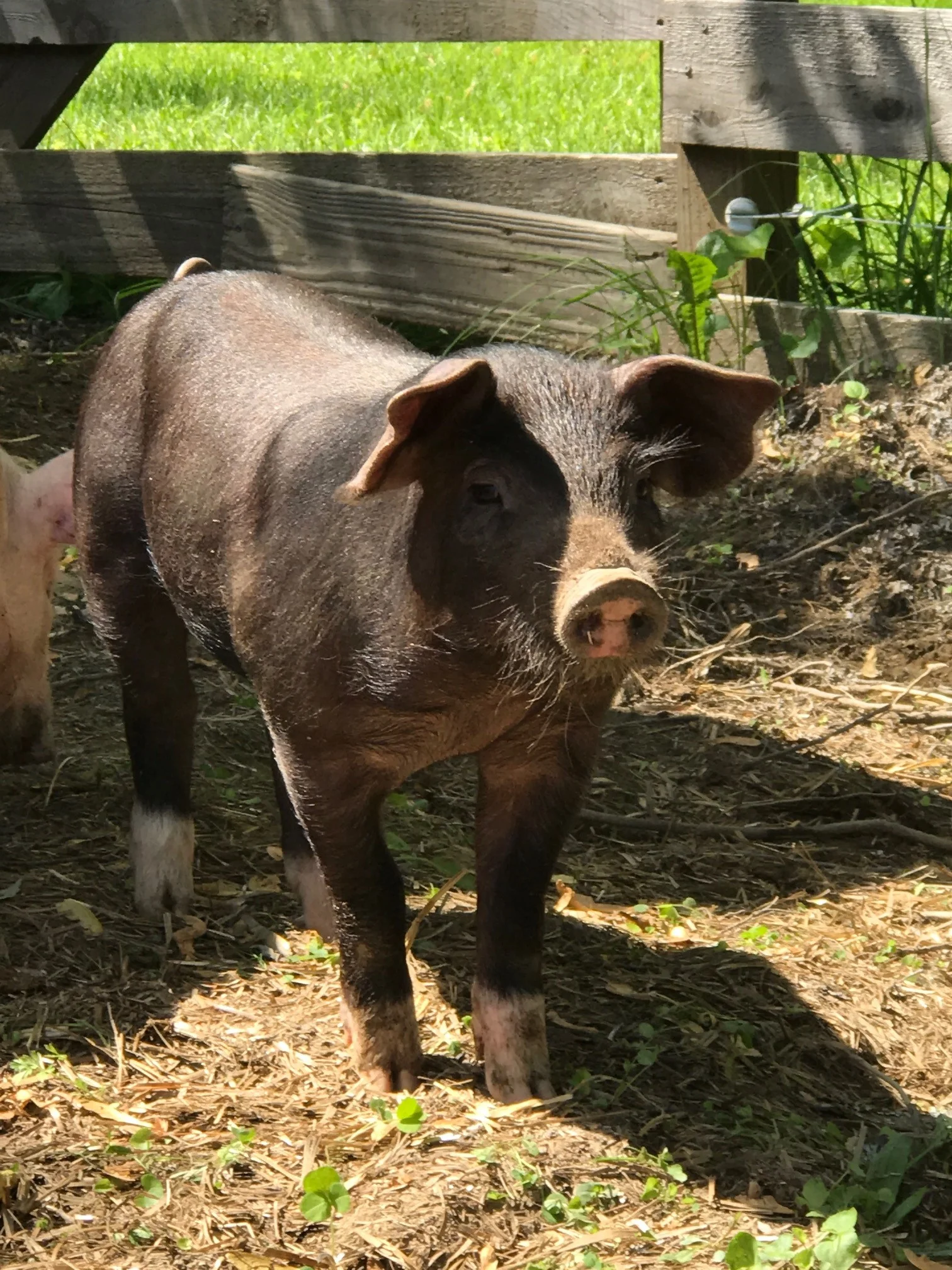 The pigs are processed at a local, State-inspected slaughterhouse to your specifications and delivered vacuum sealed and ready for your freezer. Available as whole or half pig. Contact us for more information and pricing.